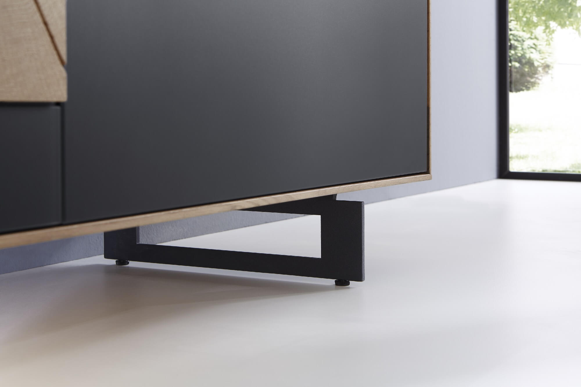 Wer sich in der Natur wie zuhause fühlt, wird Vara lieben. Elegante Metall-Applikationen in Titan und Anthrazit werden hier mit natürlichem Eichenholz kombiniert. Dabei verleiht ihr die markante Linienstruktur der sägerauen Oberfläche eine ganz individuelle Note.