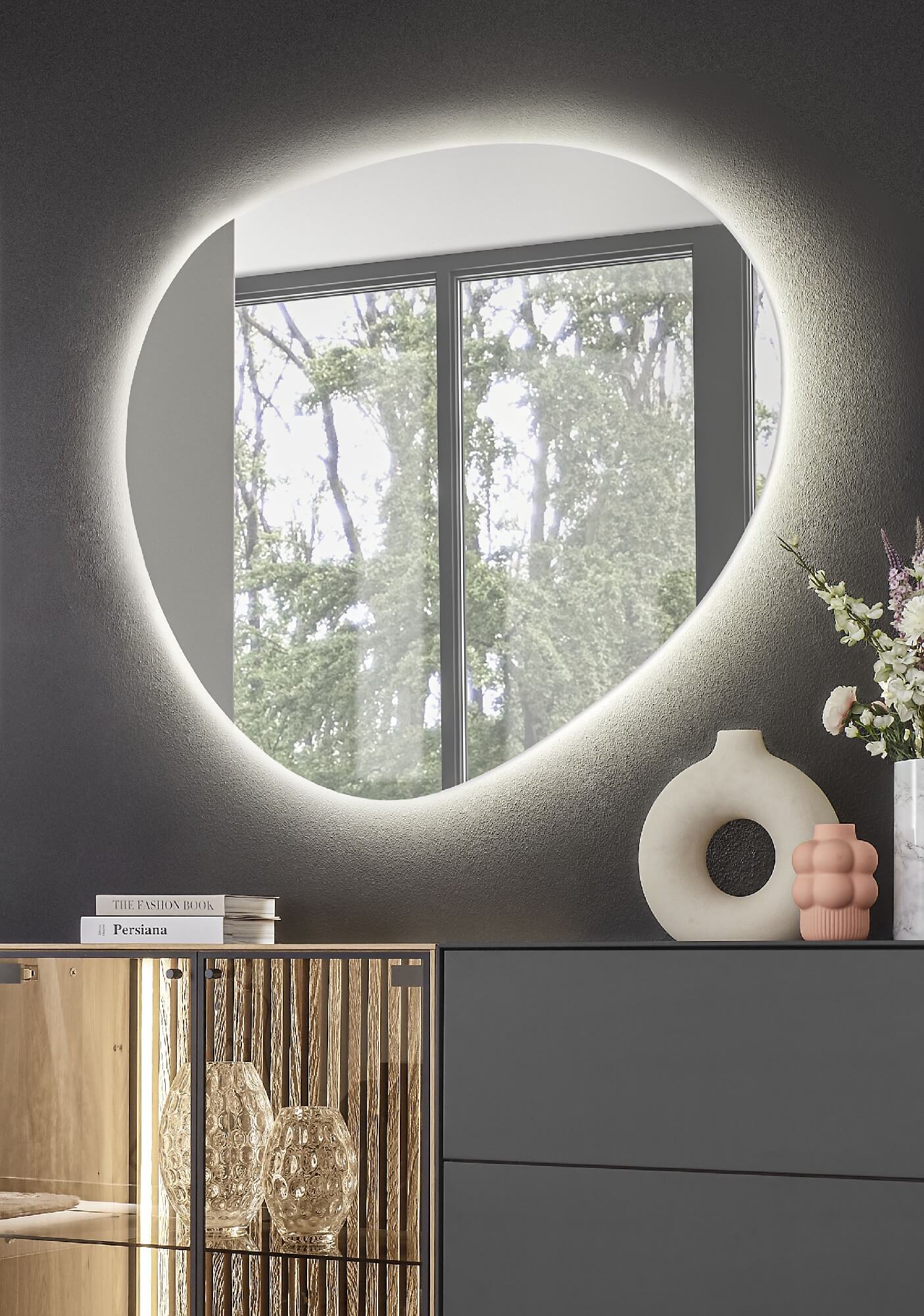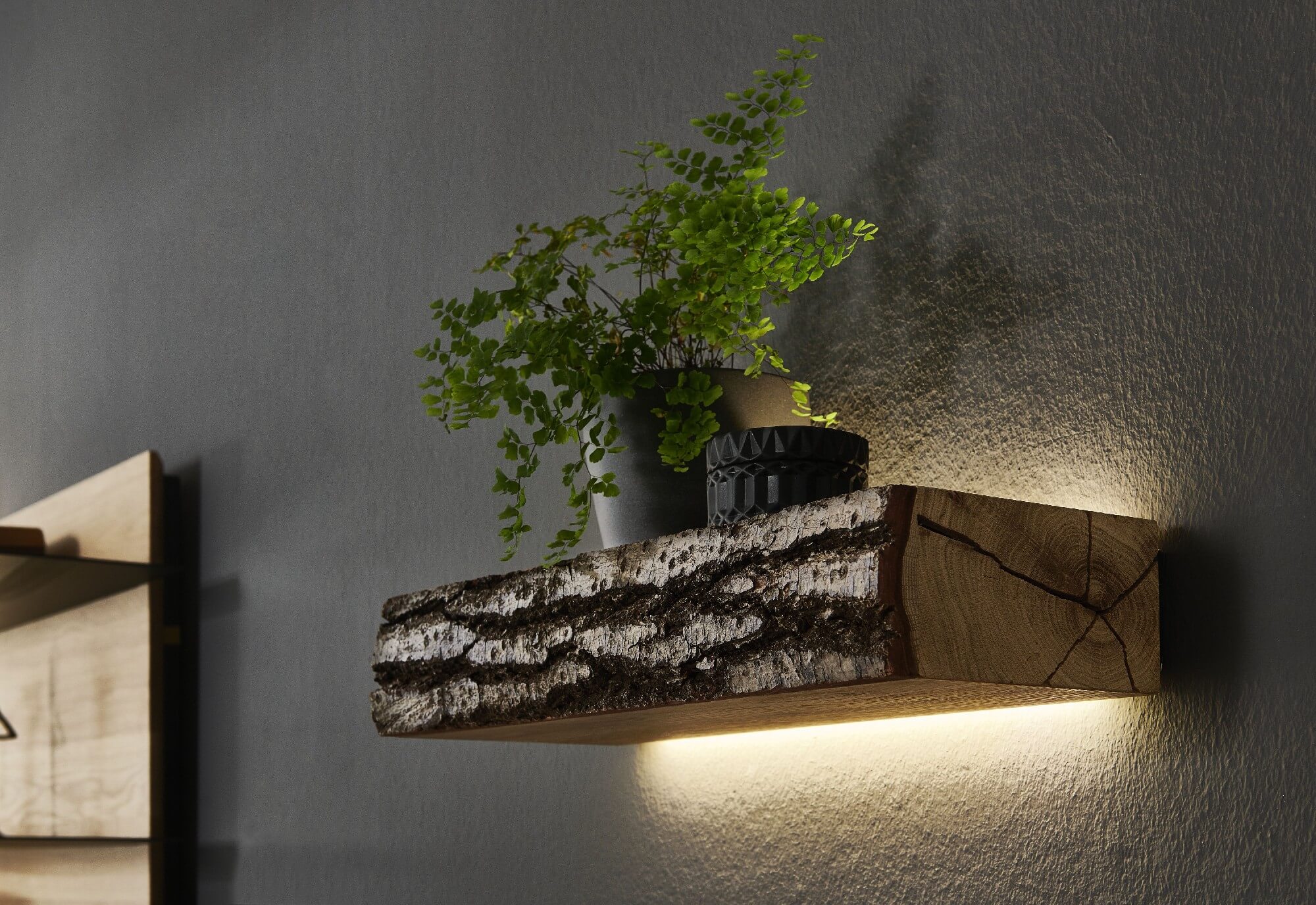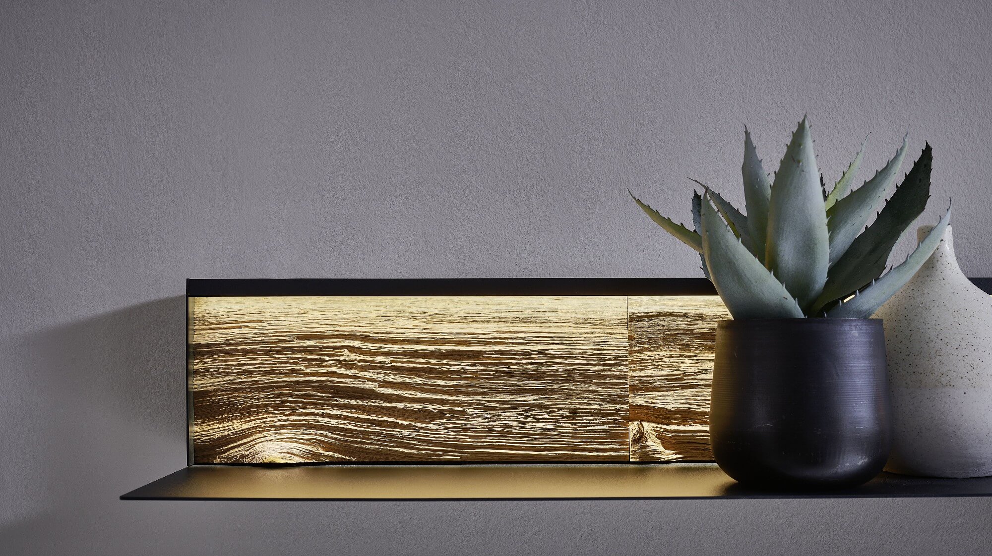 So wie Bäume und Moose im Wald sich gegenseitig brauchen, gehen Lack und Massivholz bei Selino eine perfekt aufeinander abgestimmte Symbiose ein. Die durch indirekte LED-Beleuchtung in Szene gesetzten Massivholz-Lamellen innerhalb der Möbel werden von anthrazitfarbenem Lackelementen umhüllt. Ein einzigartiges Zusammenspiel, das seinesgleichen sucht und man in Zukunft nur in Ihren vier Wänden findet.