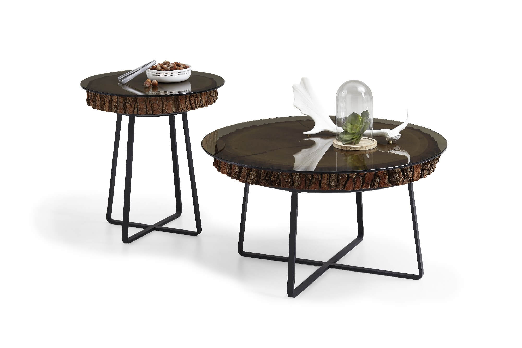 Als Scheibe oder als Block ist Hirnholz ein starkes Naturelement. Elegant und modern inszeniert Caya Wohn- und Lebensräume.