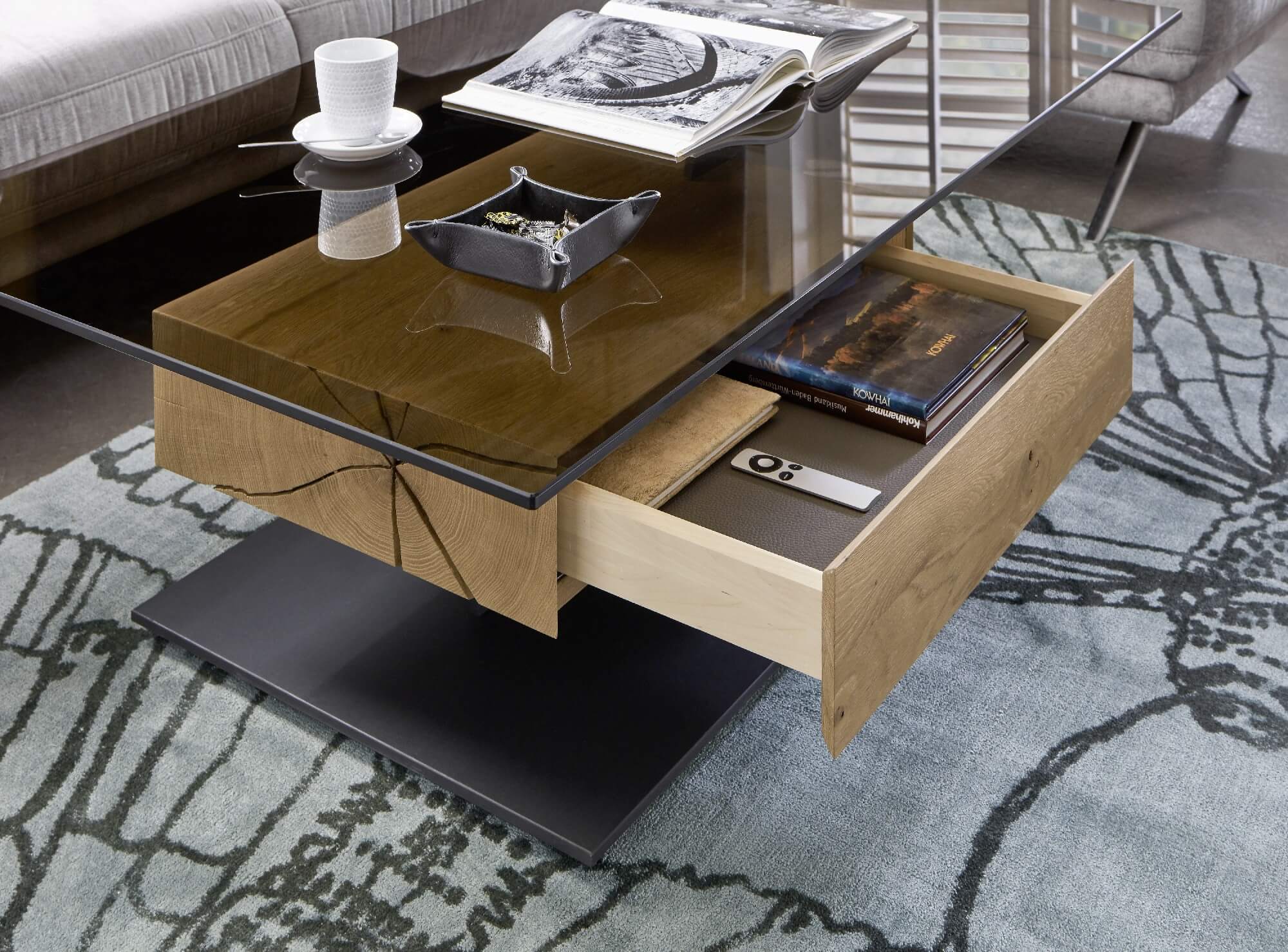 Eine moderne Einrichtung braucht nicht immer Ecken und Kanten. Bei Knud runden wir Ihren Wohnbereich im wahrsten Sinne ab. Die softe Struktur und Haptik sowie die fein gearbeiteten Griffmulden sprechen für die Handwerklichkeit des Programms. Machen Sie es sich auf Ihrer Couch bequem und betrachten Sie dieses Naturschauspiel oder essen bzw. arbeiten Sie an Ihrem Knud-Couchtisch. Mit der Lift-Funktion lässt sich die Tischplatte auf die Höhe einstellen, die Sie für Ihre Tätigkeit benötigen.